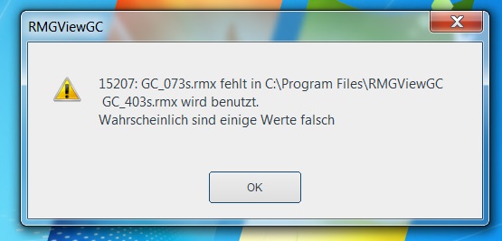 Beim Start von RMGViewGC kam die Meldung siehe Bild.